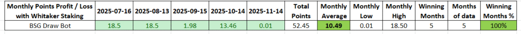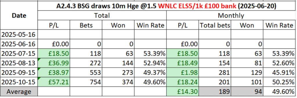 The BSG Draw system bets on matches where the data suggests it will be value to bet on the draw FT result.