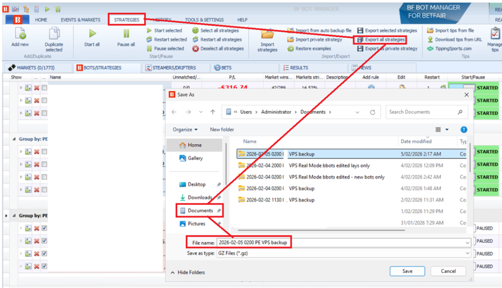 Also, if the VPS connection feels slow and difficult to edit, I often copy the backup file to my home PC, import it into my home PC BFBM, make the edits there, and then export the edited bots back to the VPS and import/overwrite them into the VPS. That helps me avoid making unintended changes to my real mode VPS, too.