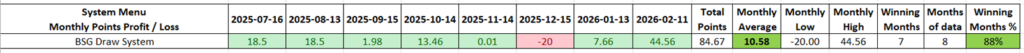 BSG Draw System 7 out of 8 months in profit, +10% average monthly profit, Whitaker staking