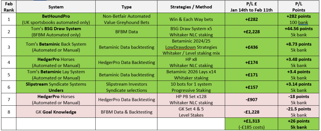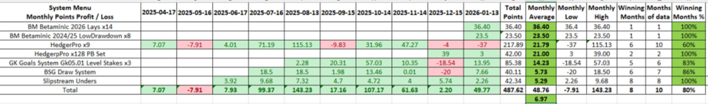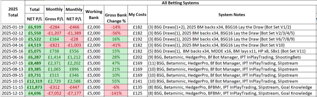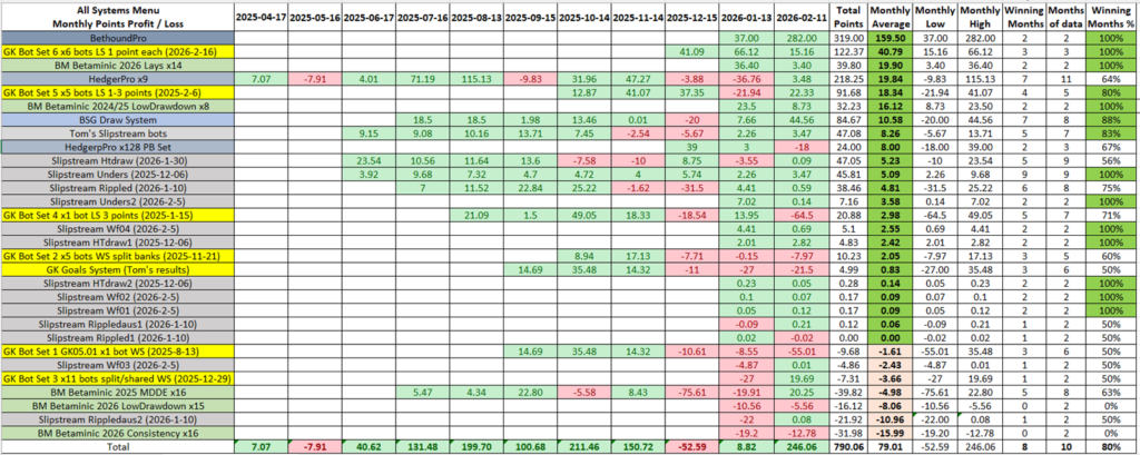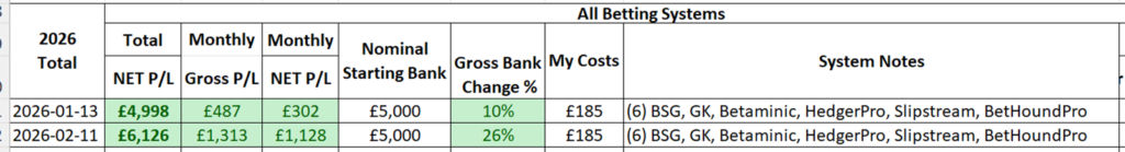 This is a monthly newsletter & betting diary that shows the results of the betting systems I pay to follow.