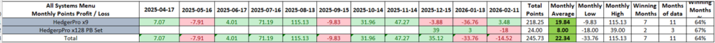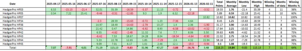 11 HedgerPro Results: +19 points per month average (7 of 11 months in profit)