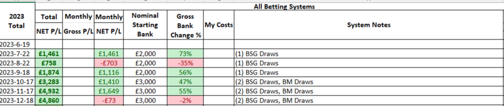 3 Betting System Overall Results +26% profit. +£1,313 on the 5k allotted bank the last month