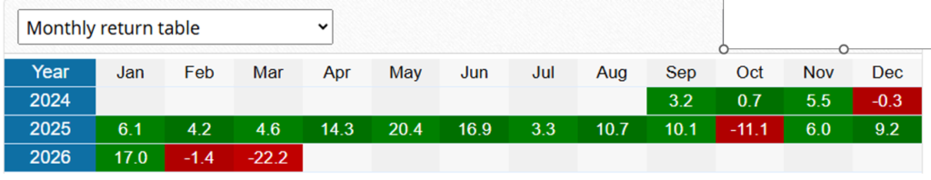 The key stats for me are the +4.7% monthly return and the 551 days of history.