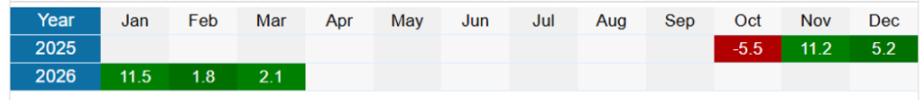 We can also see the monthly returns on the bots in a table. They have had a very good and consistent run. We are halfway through March and can see an unusually poor month, but overall, the bots seem to have good settings. If I was looking at a sports betting bot with these results, I would consider it a good bot set to follow.