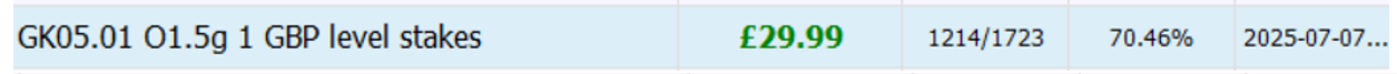 A New betting bot “GK05.01” from GK Goal Knowledge is available. It does not need a subscriptions. It uses a 50-50 profit share model.