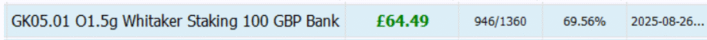 +64% increase in 3 months on a £100 Bank with Whitaker Staking