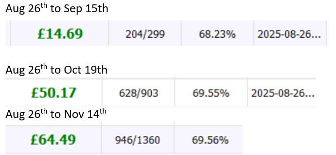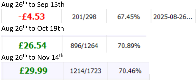 I think we can all agree that +65% in 3 months is really good on Whitaker Stakes (smart level stakes).