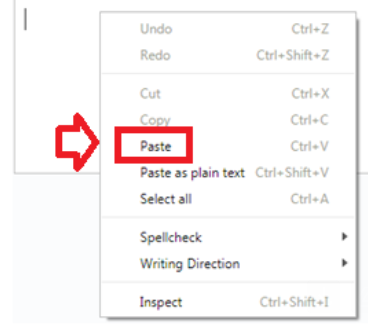 Or you can right-click your mouse and left-click “paste” in the pop-up menu.